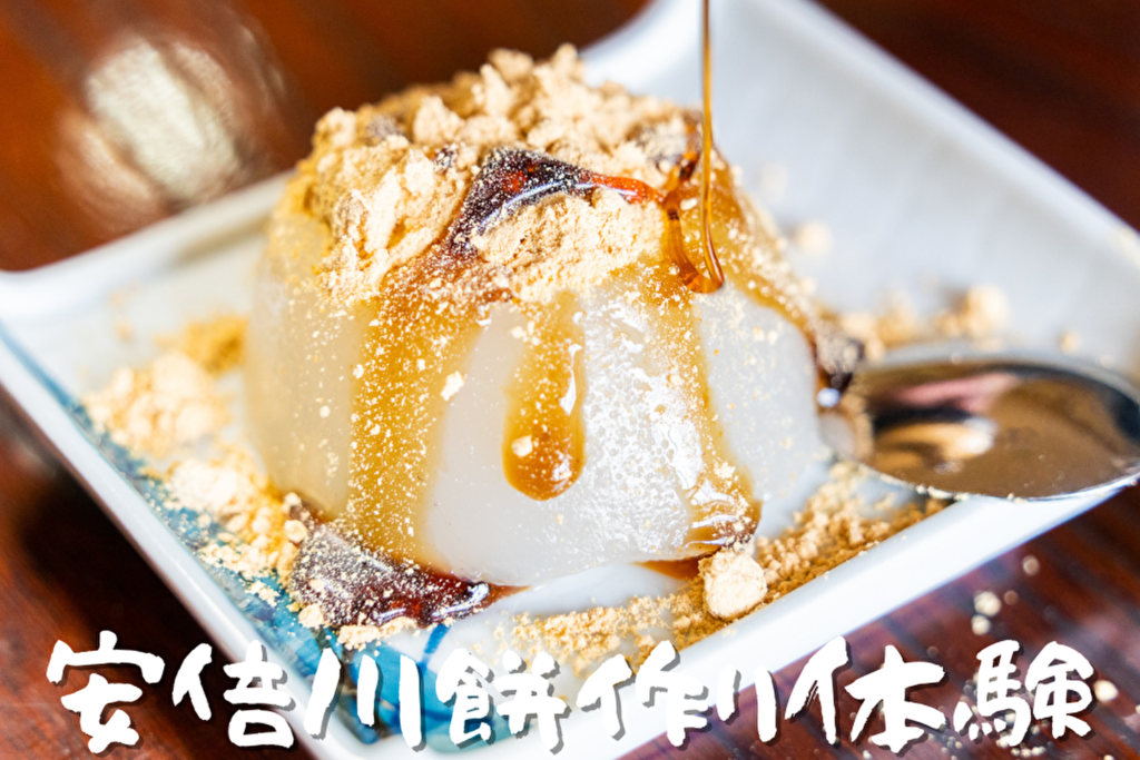 1人気のお土産作り体験がセットになりました。黒蜜きな粉餅はその場で食べてもOK。 |