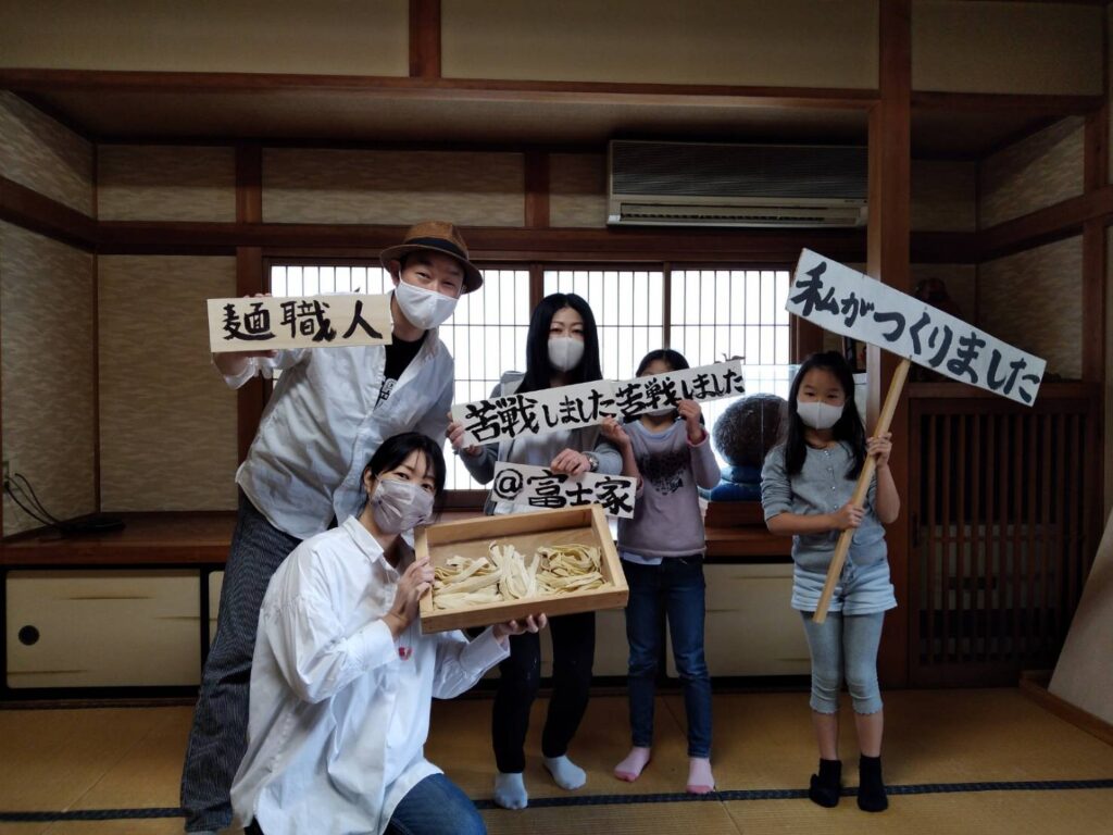 - 富士家では二郎系ラーメン作り体験以外にも、郷土料理ほうとう、富士吉田名物吉田のうどんや忍野八海そばなどの山梨の郷土料理を作ってお召し上がり頂く体験をご用意しております。ご希望の場合はお気軽にお申し付けください。