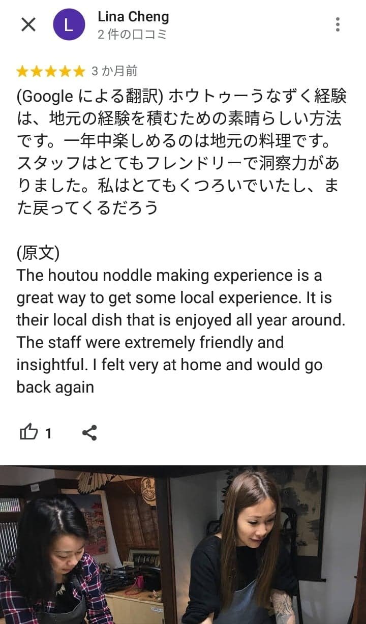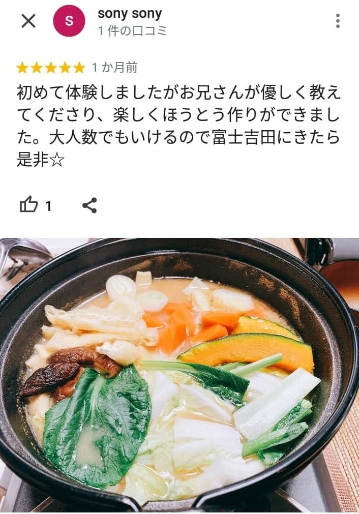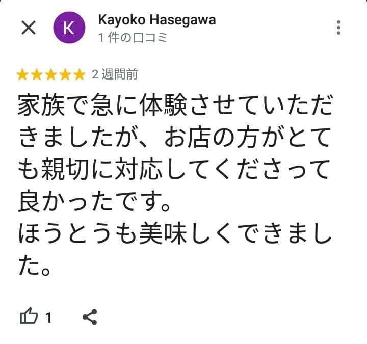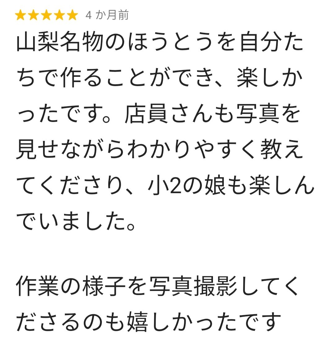 ほうとう体験のお客様の声・感想