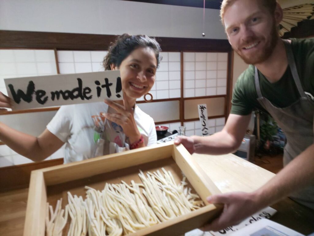 より本物に近づくように、お客様に極太のごわごわした麺を作って頂きます。